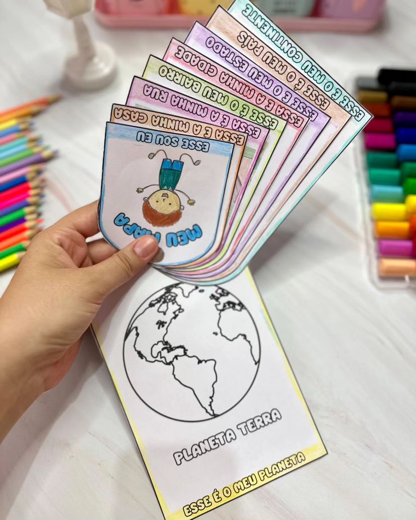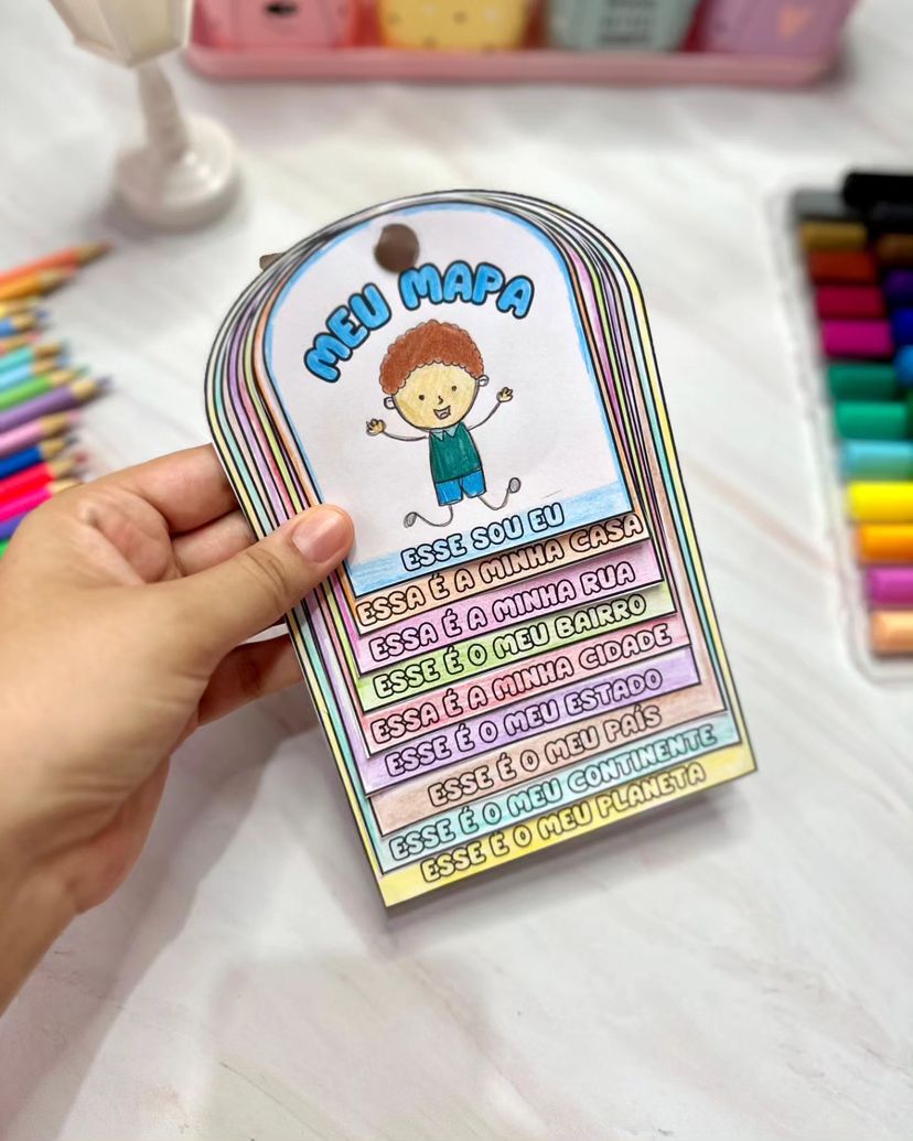 promovendo o desenvolvimento do senso de pertencimento e identidade.Ao representar cada nível de sua localização, desde sua própria pessoa até o planeta, a criança desenvolve sua consciência espacial e geográfica, além de ampliar seu